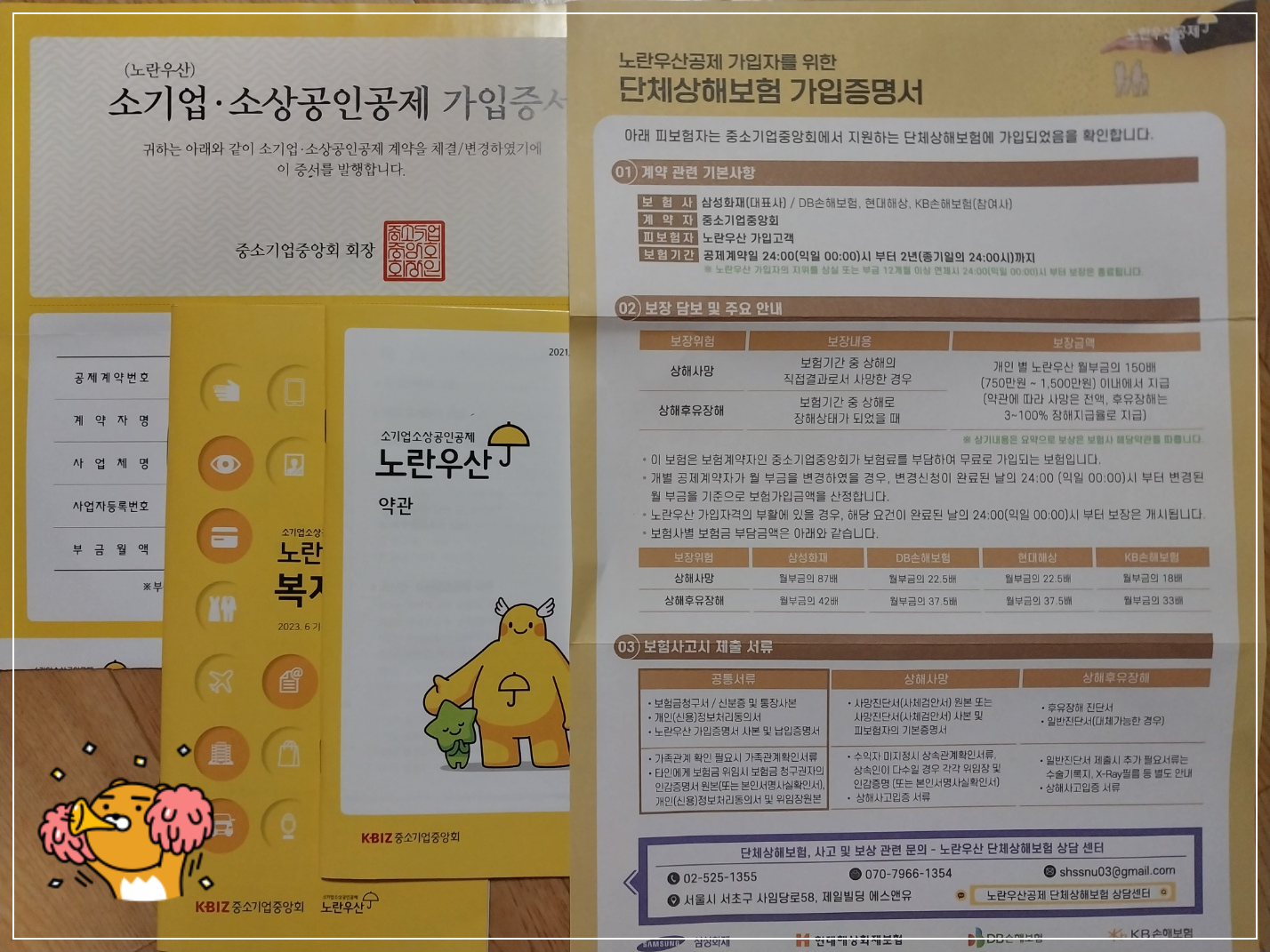 참!! 가입하면 이런거 우편물로 옵니다. 상해보험 증서~~!!